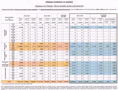 Comparativamente a 2008, conforme se pode verificar pela leitura do mapa anexo, em 2009 a CMA propõe-se aumentar em cerca de 6% os gastos com o Pessoal Contratado a Termo (rubrica 01.01.06).